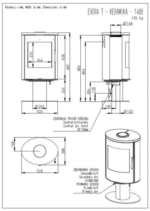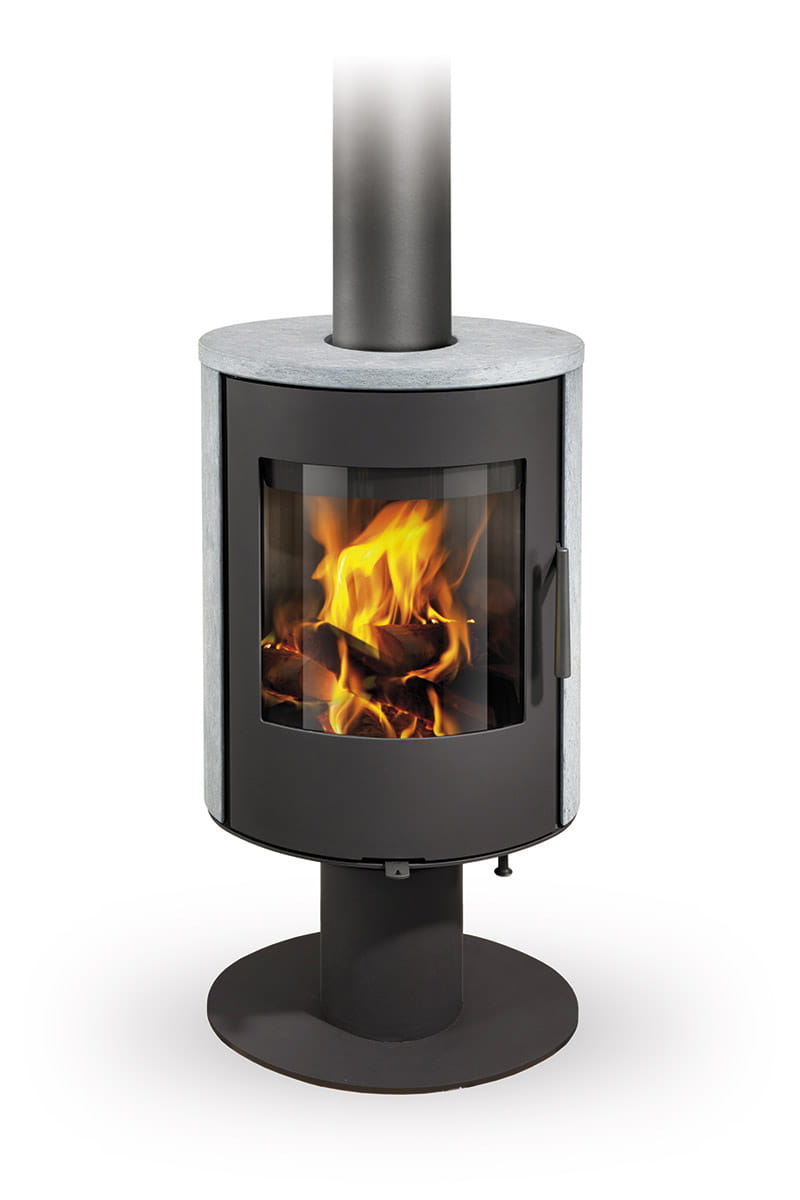 • zaokrąglona szyba umożliwia widok ognia pod różnymi kontami